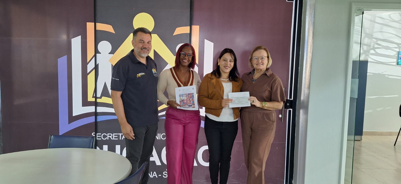 A entrega simbólica foi realizada com a presença da gestora da unidade, Gislaine Bacelar, da secretária municipal de educação, Estela Goda, do secretário adjunto, Carlos Shinkado, e da representante do setor social da Usina IPÊ, Karina Soares da Silva. A ação reforça o valor das parcerias entre o setor público e privado na construção de uma educação mais rica, sensível e transformadora.