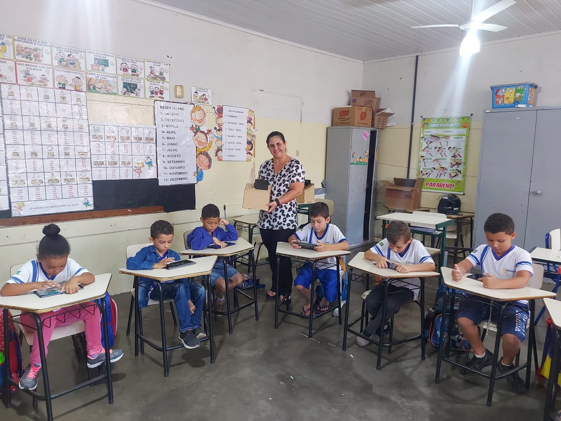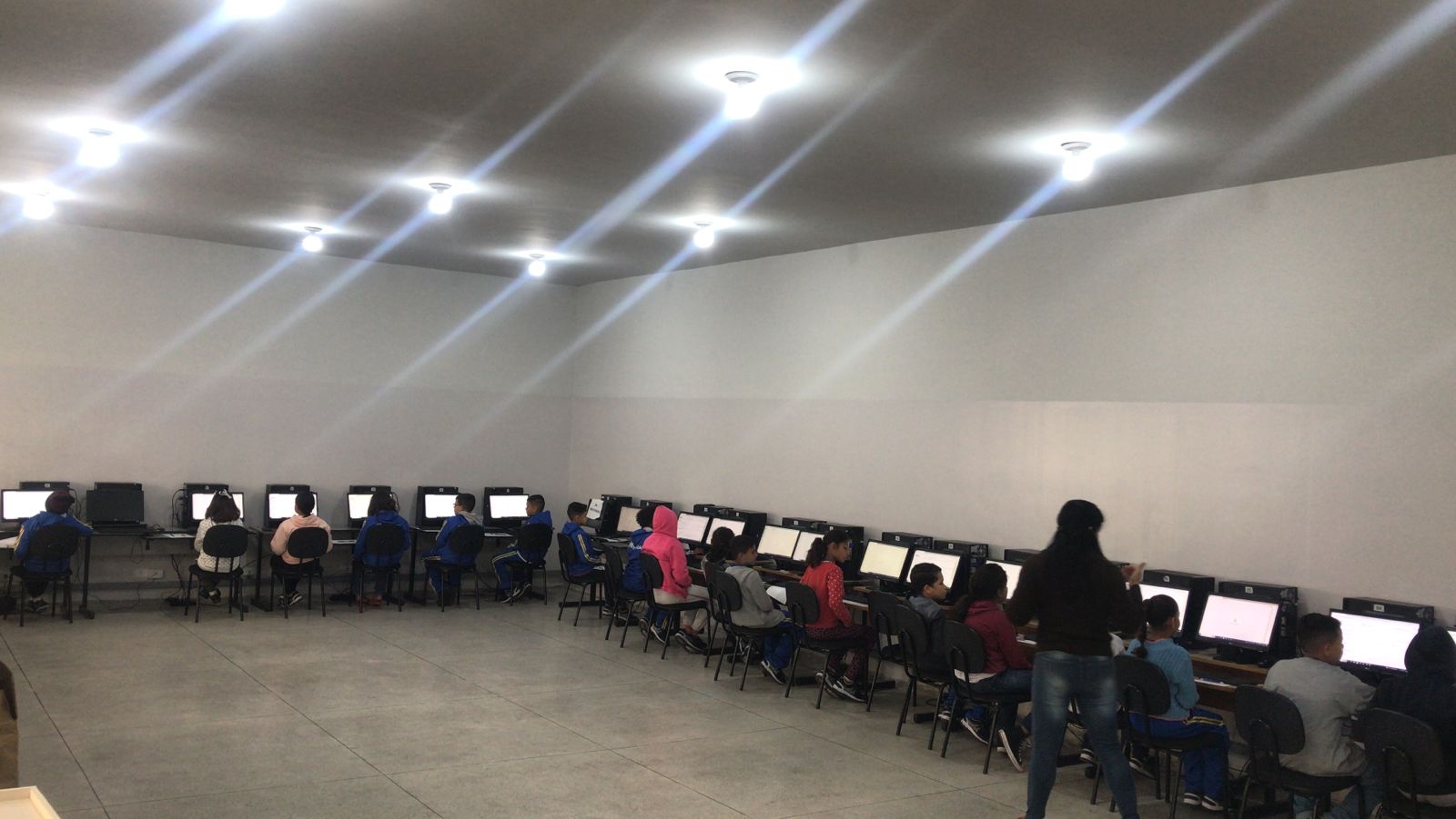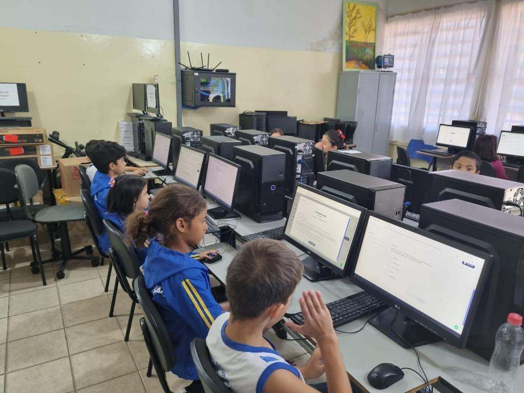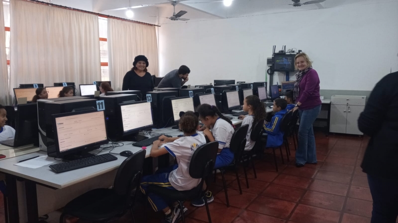 Estão sendo utilizados os computadores dos Laboratórios de informática das Escolas e também os tablets.