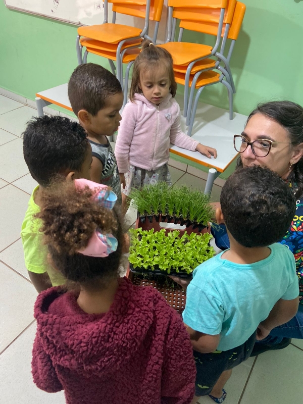 Os alunos do CEI AMÁLIA MORANO TENCARTE, localizado na Vila Botega, estão aprendendo de um jeito especial sobre o cultivo de hortaliças, o Projeto intitulado de “Espaço Verde da Tia Jan”, conta com o cultivo de hortaliças e tem como objetivo oportunizar às crianças vivências que as levam a conhecer as origens dos alimentos que consomem no dia a dia, experimentando na prática com a mão na terra, desde o momento da semeadura (plantio) até a colheita e consumo dos alimentos.