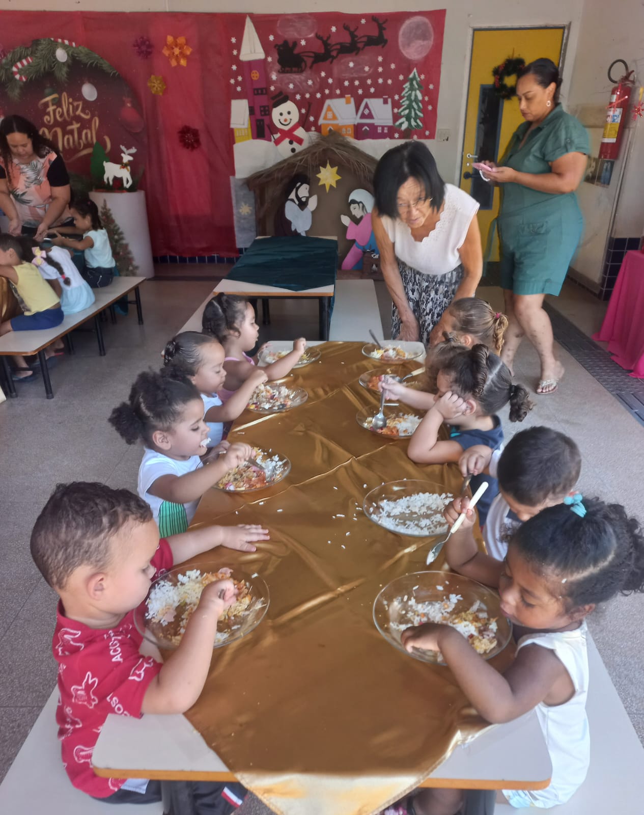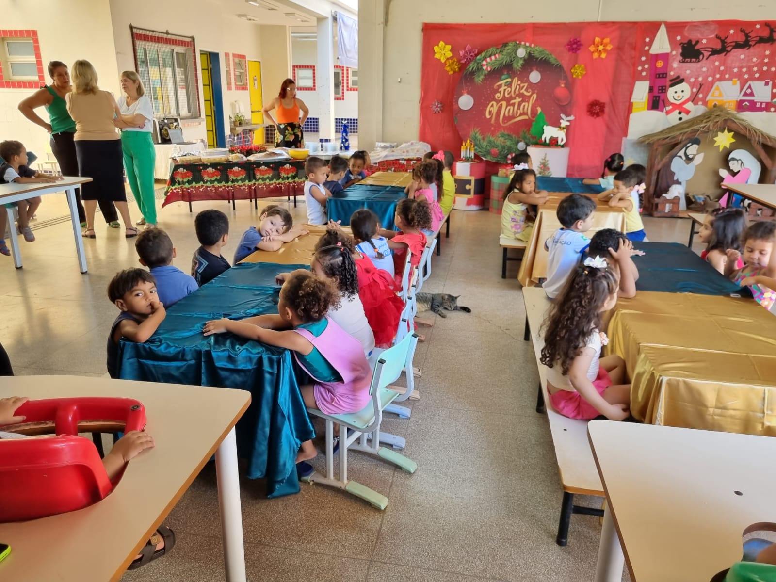 O CEI, que acolhe crianças da comunidade, preparou uma ceia natalina para proporcionar um momento de confraternização e festividade. Com a colaboração de voluntários e doações, a equipe da creche trabalhou intensamente para garantir uma manhã inesquecível para os pequenos.