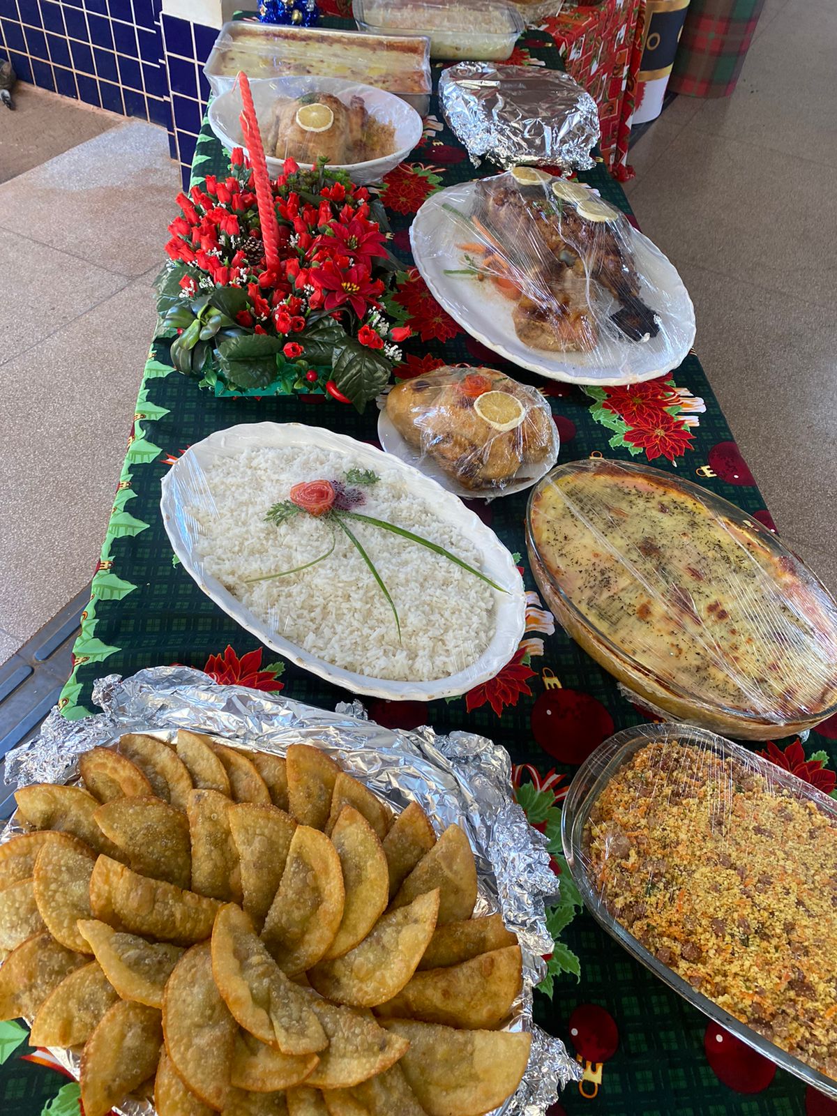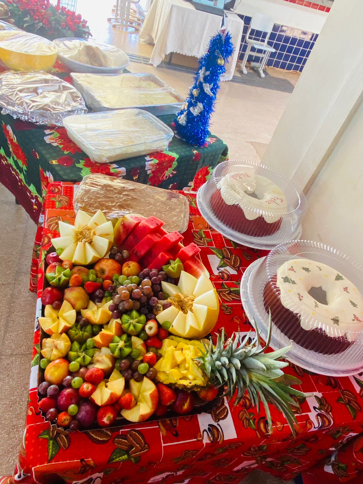 O ambiente estava decorado com presépio, enfeites e árvores de Natal, proporcionando um clima acolhedor e festivo. Cada criança pôde desfrutar de uma refeição deliciosa, com direito a peru, lombo, chester, lasanha, saladas, doces, bolo, sorvete e muitas guloseimas,