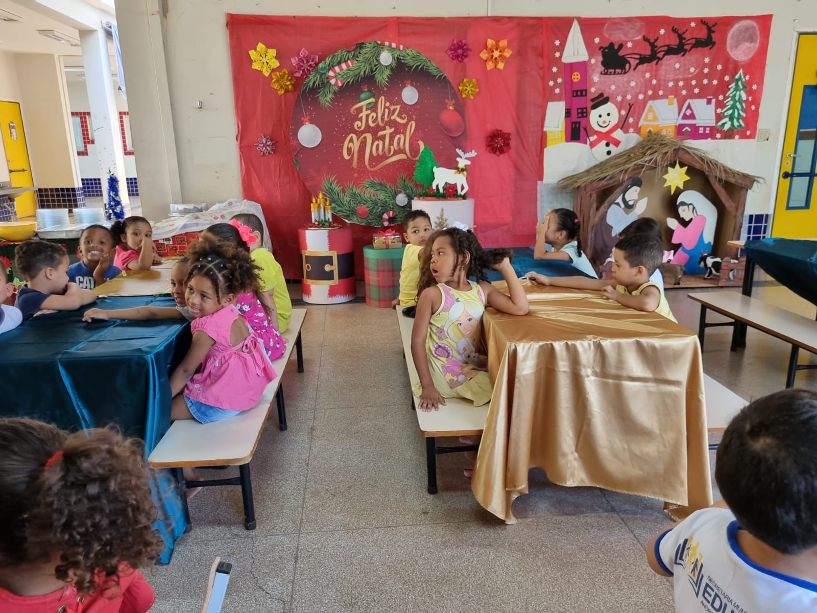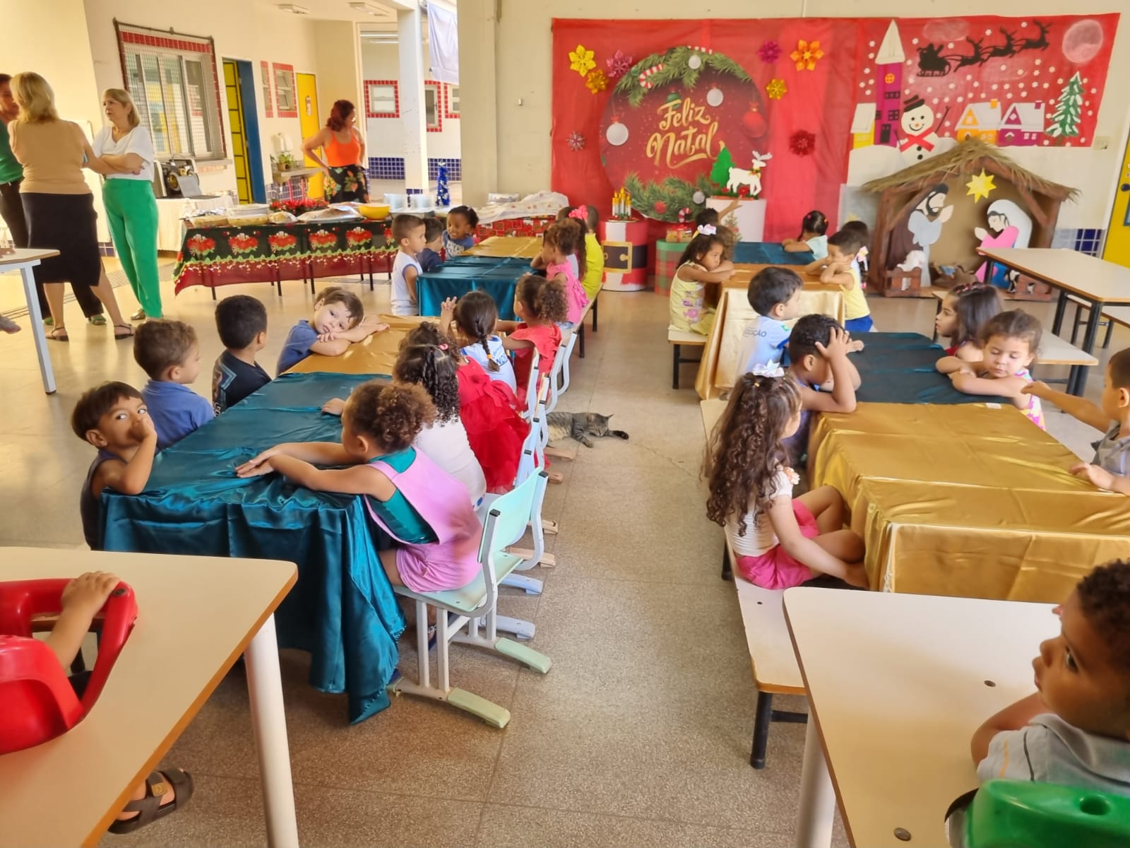 Alegria, amor e solidariedade foram os ingredientes principais da ceia natalina realizada no Centro de Educação Infantil “Irene Sueko Miyashiro”, localizado na Quinta dos Castanheiras. Na última quinta-feira (14), as crianças tiveram a oportunidade de vivenciar um momento mágico e especial, repleto de sorrisos e emoções.