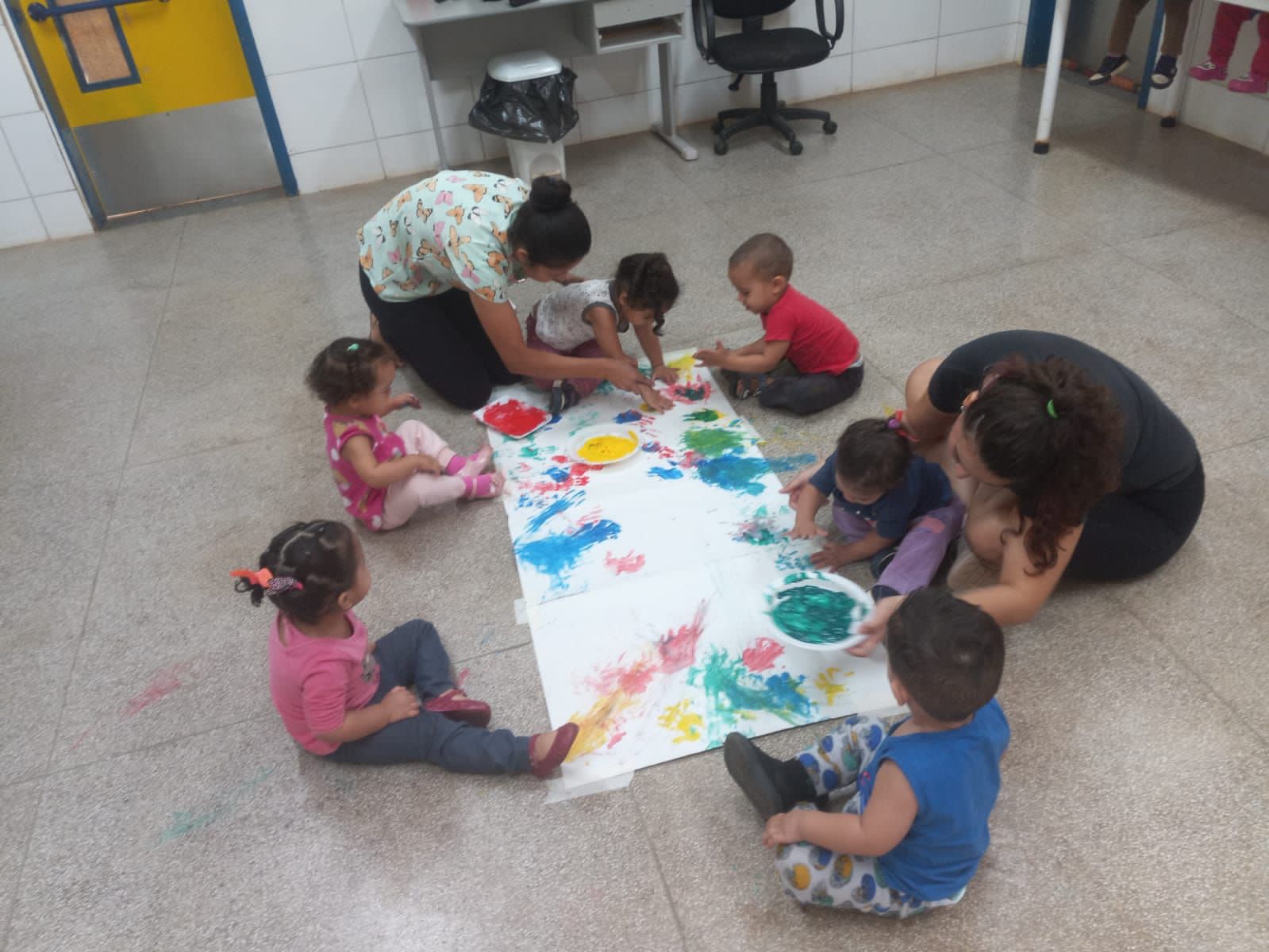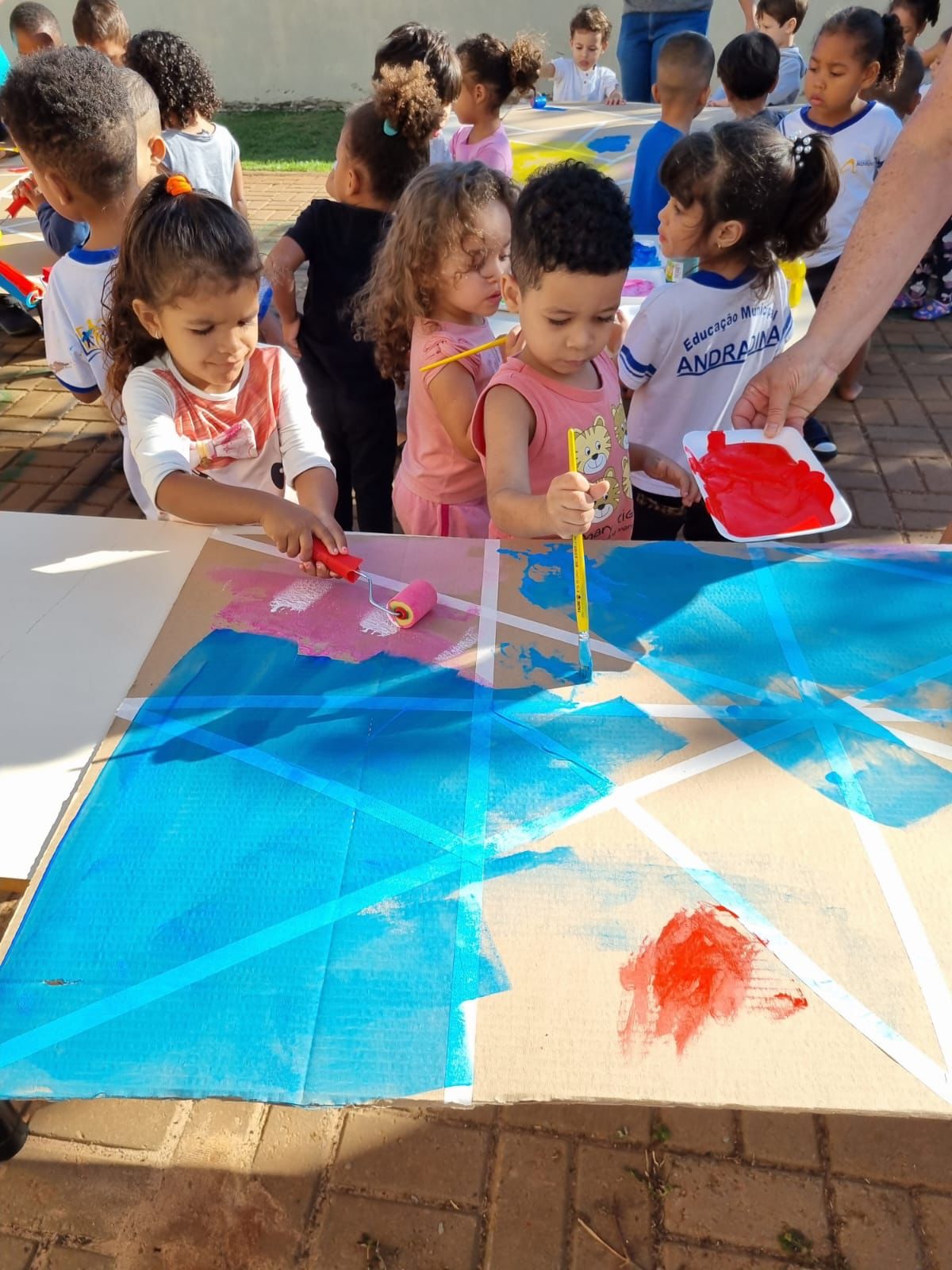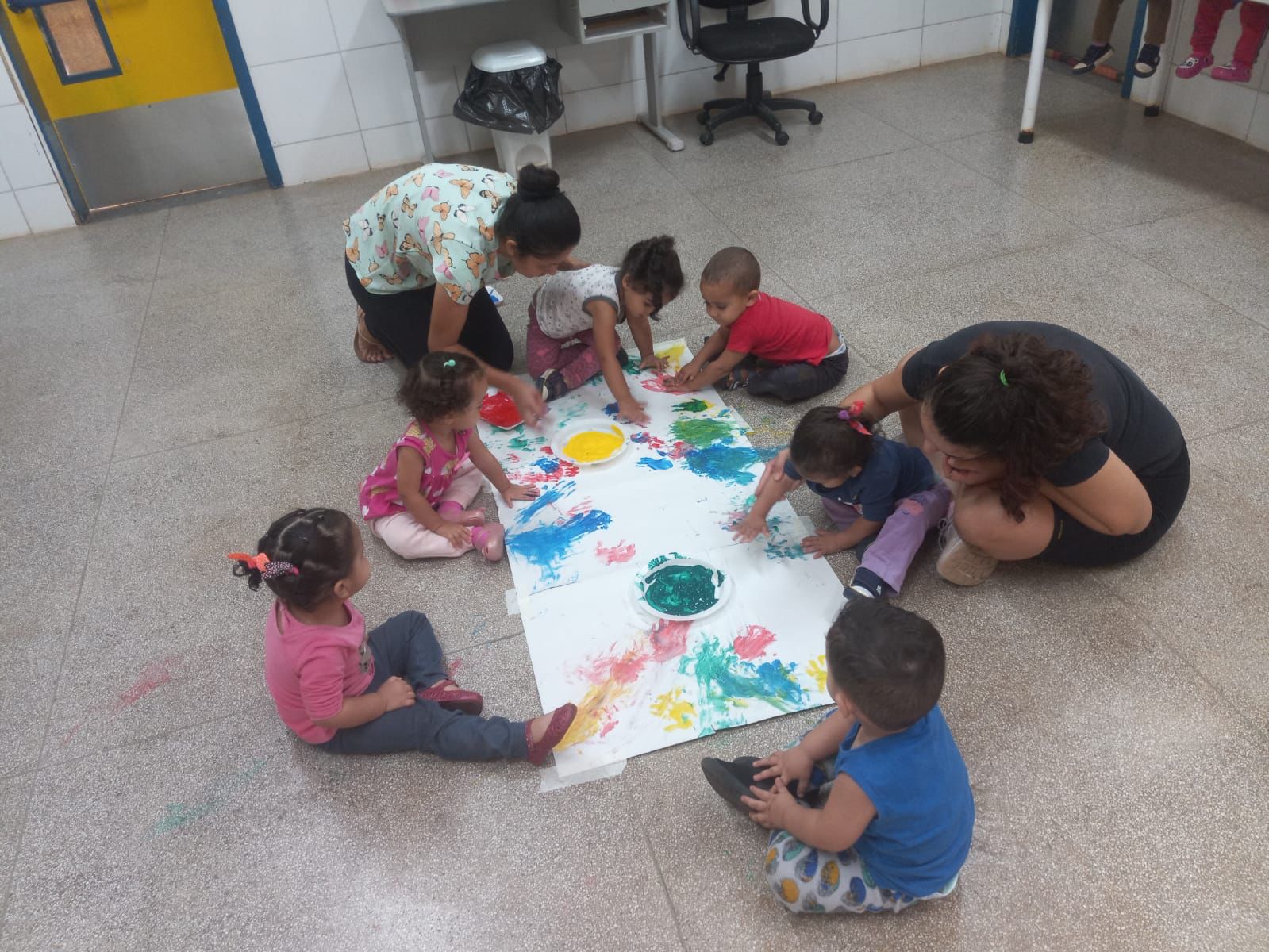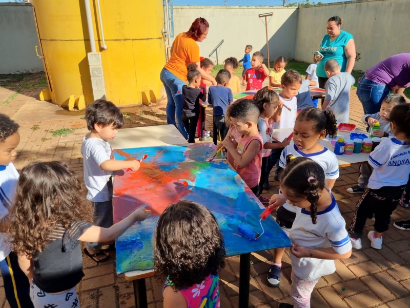 As crianças da comunidade Quinta dos Castanheiras, matriculadas no CEI "Irene Sueko Miyashiro", tiveram uma semana produtiva e de muita arte por meio de pinturas. A realização das atividades vem ao encontro da proposta do SSE (Sistema Sesi de Ensino) introduzido este ano na Educação Infantil de 0 a 3 anos. Essas experiências estão em consonância com o arranjo, Ateliê de Mistura que consiste na utilização de uma diversidade de técnicas a partir de materiais não estruturados, inspirado na abordagem de Réggio Emilia que é referência em ateliês para educação infantil.