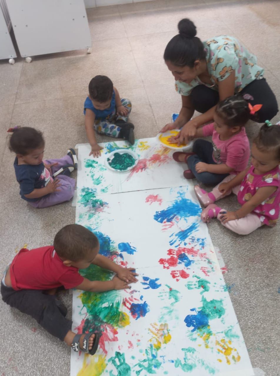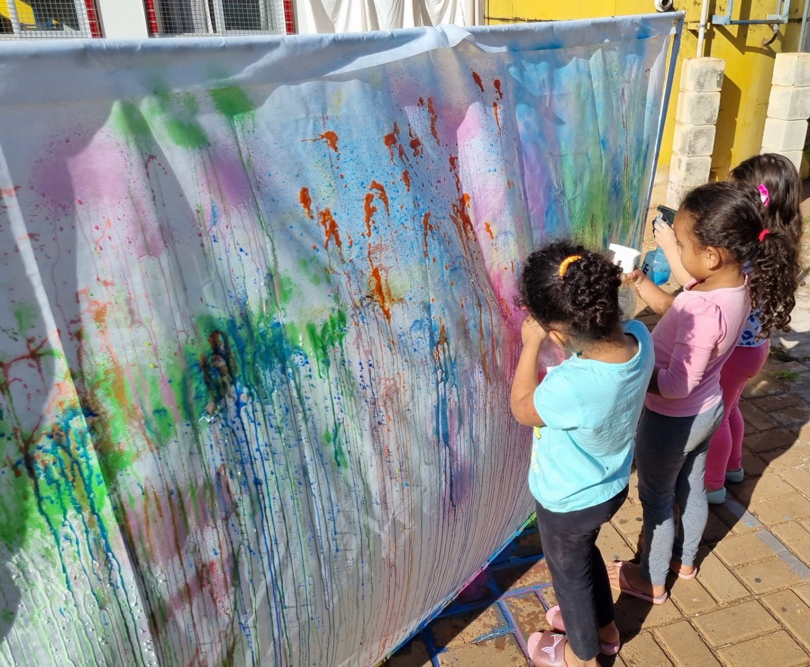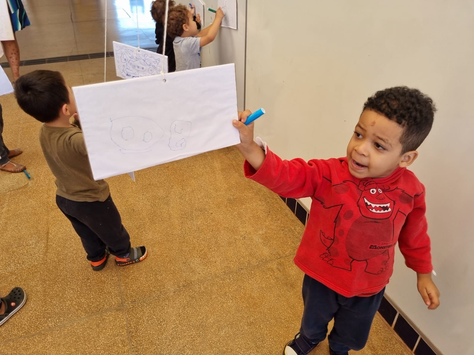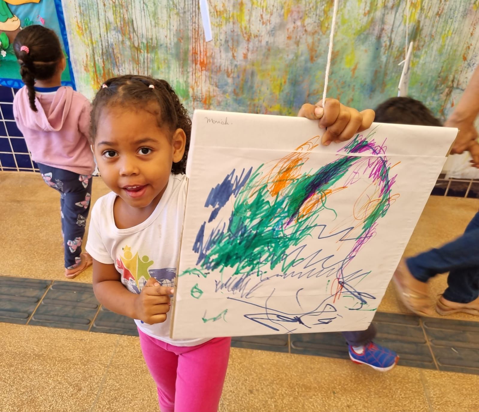 As crianças da comunidade Quinta dos Castanheiras, matriculadas no CEI "Irene Sueko Miyashiro", tiveram uma semana produtiva e de muita arte por meio de pinturas. A realização das atividades vem ao encontro da proposta do SSE (Sistema Sesi de Ensino) introduzido este ano na Educação Infantil de 0 a 3 anos. Essas experiências estão em consonância com o arranjo, Ateliê de Mistura que consiste na utilização de uma diversidade de técnicas a partir de materiais não estruturados, inspirado na abordagem de Réggio Emilia que é referência em ateliês para educação infantil.