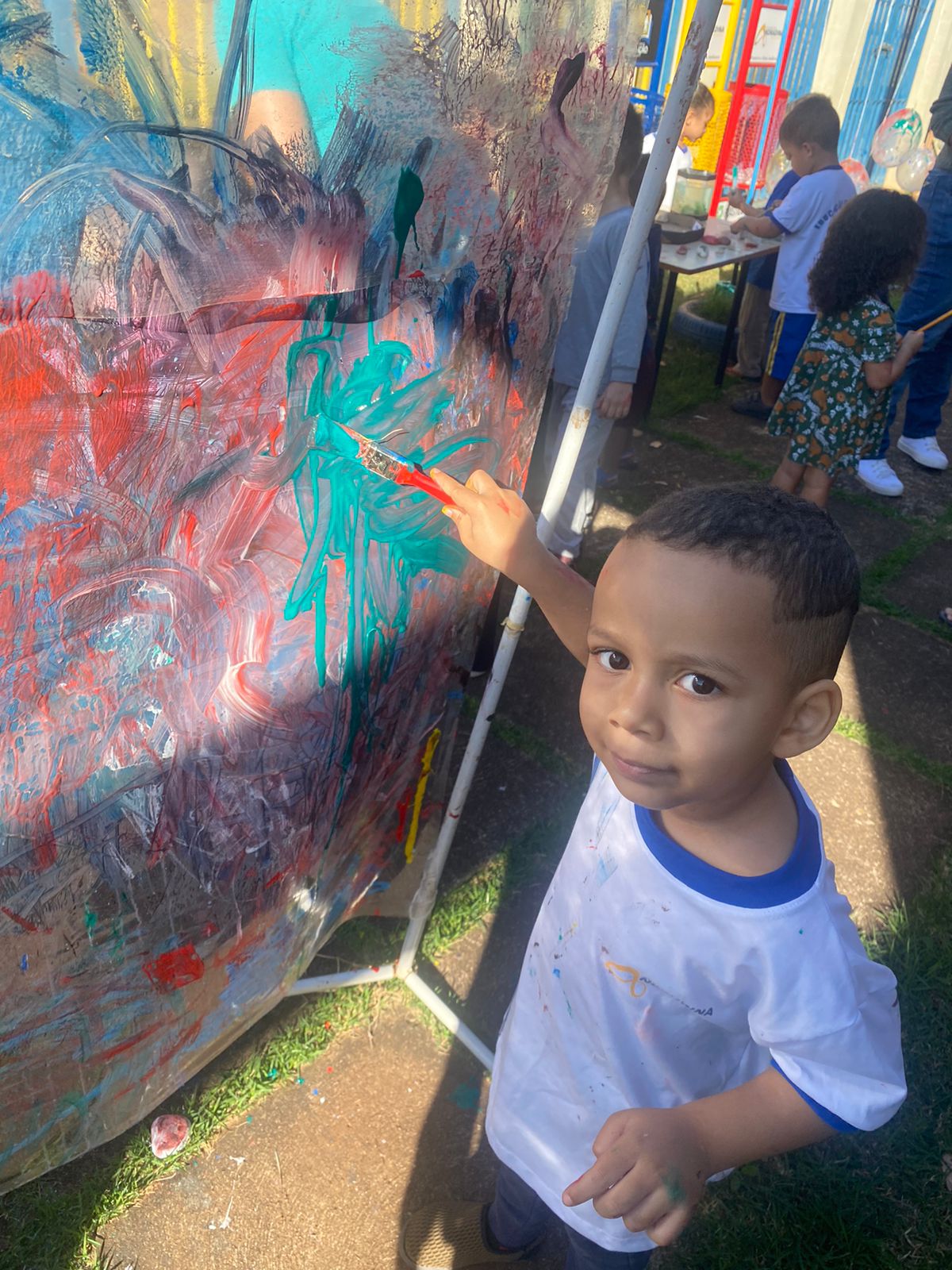 A maior parte das atividades foram feitas ao ar livre proporcionando mais autonomia e vivências para as crianças, afinal são nesses momentos que elas têm acesso a vários tipos de cultura e arte, possibilitando o enriquecimento do repertório de experiências, assim como novas aprendizagens.