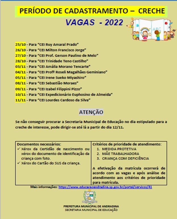 Período de Cadastramento - Creches.