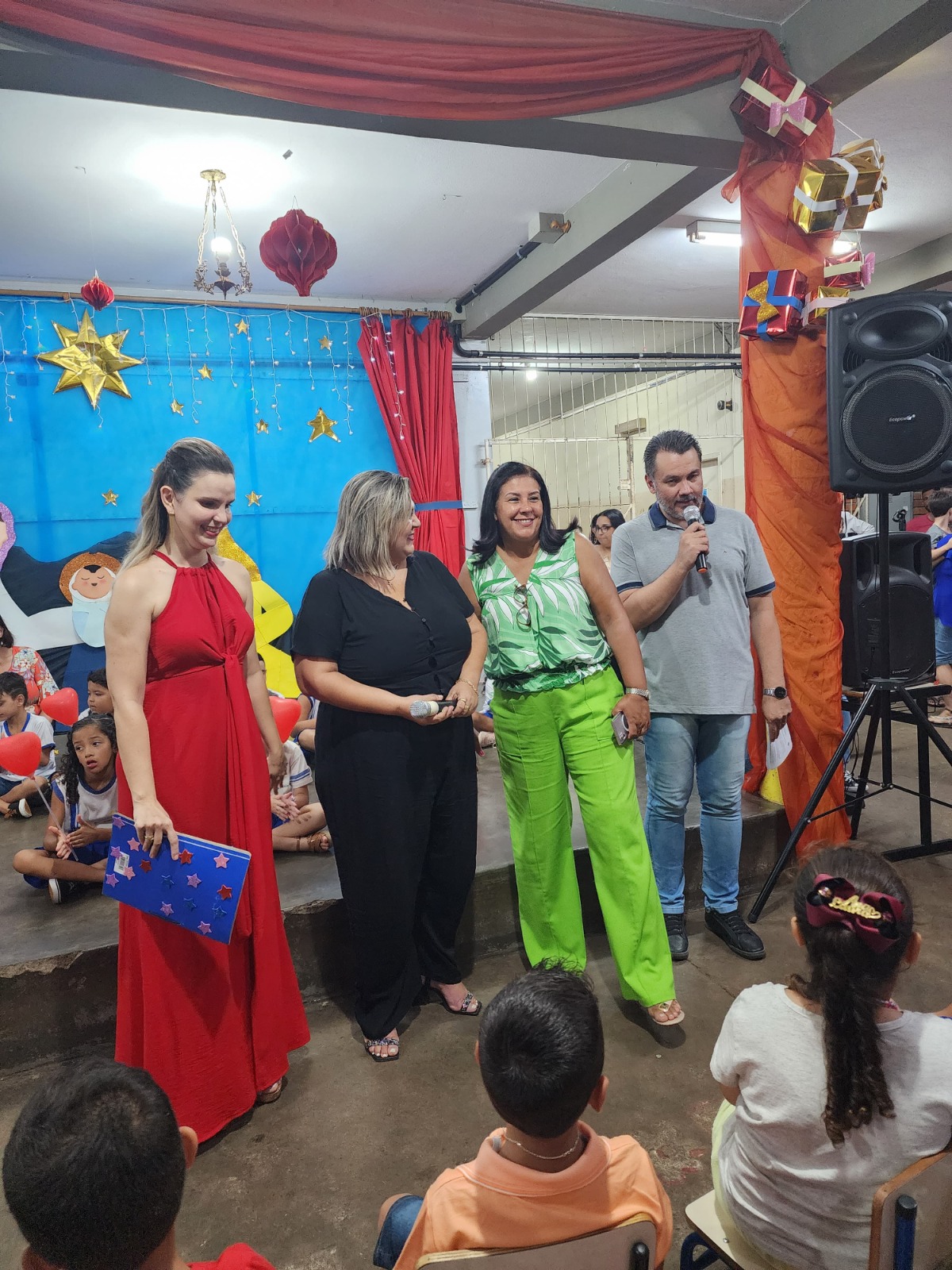 Ao final das apresentações, a Supervisora do Polo Humberto Passarelli Adriana Alves, representando a Secretaria Municipal de Educação, agradeceu a presença de todos e enfatizou a importância de compartilhar as alegrias do Natal, fortalecendo laços mais significativos destacando a parceria Família e Escola.