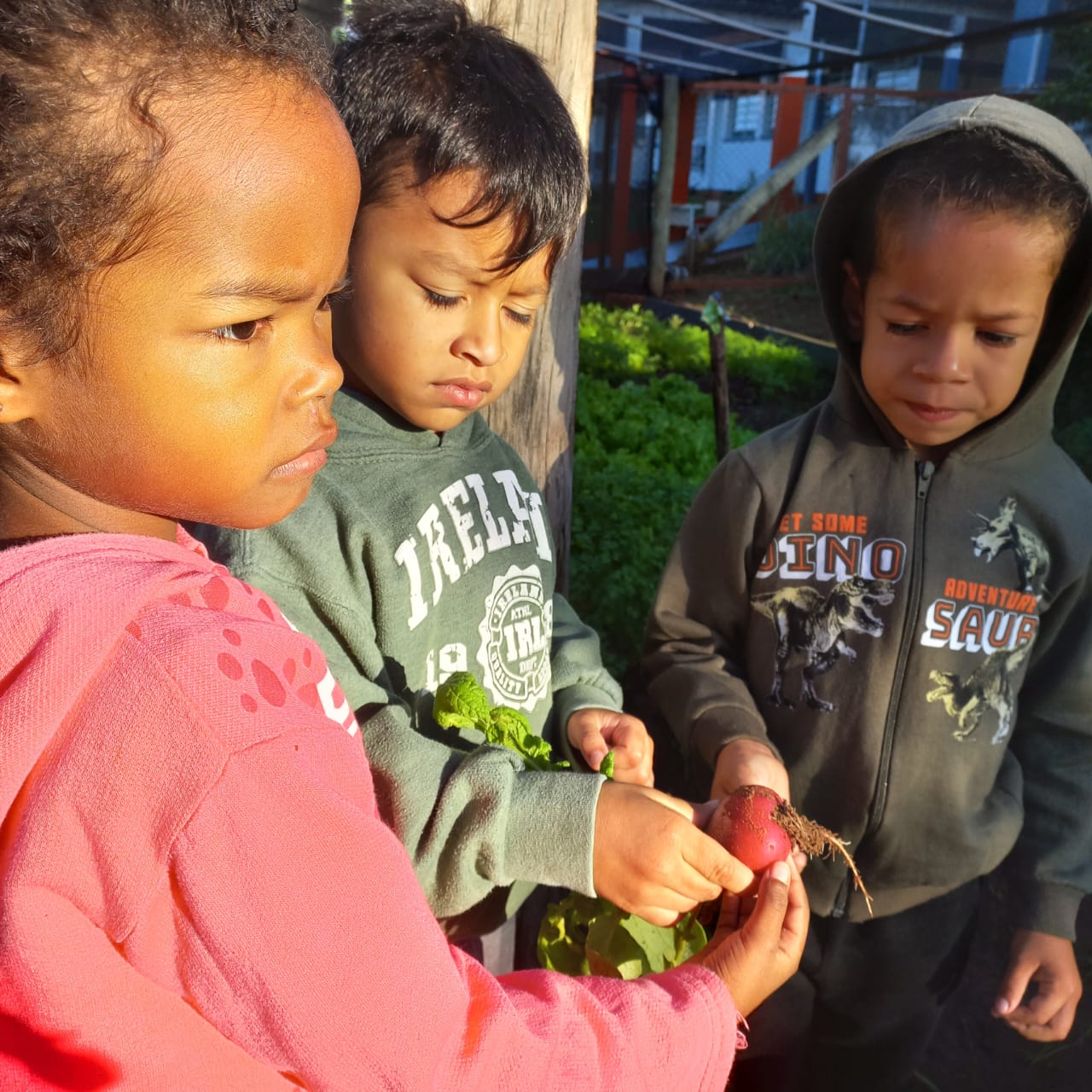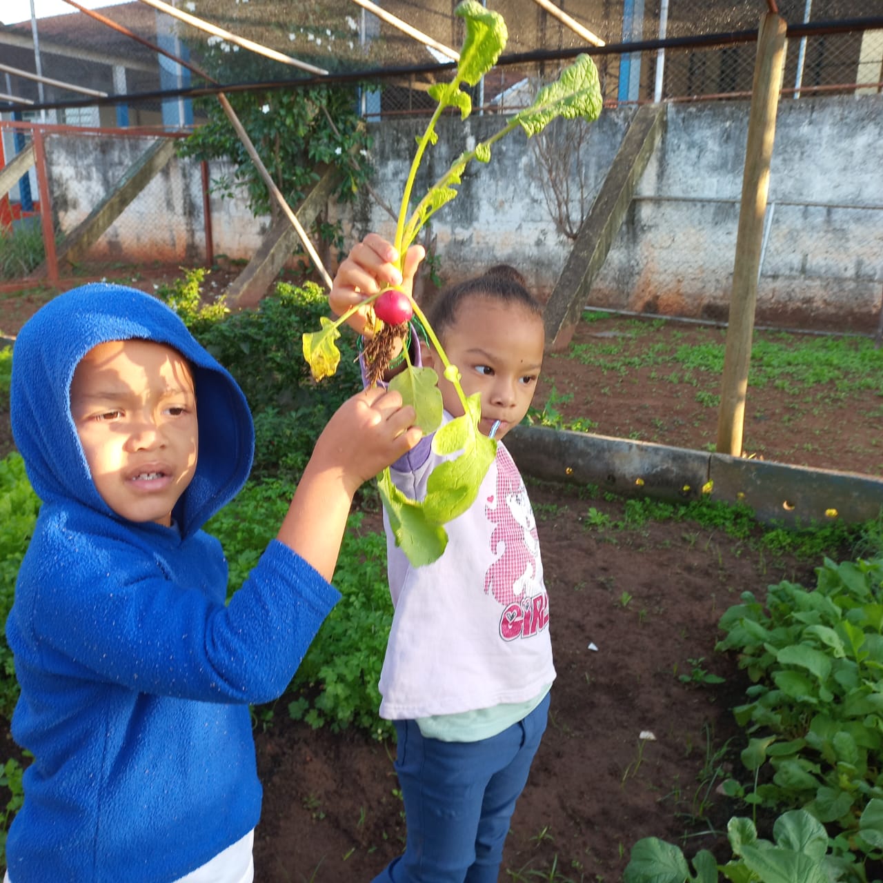 A EMEI “Josepha de Jesus Carreira” celebra a colheita do Projeto: Alimentação Saudável: Comer Bem é Viver Melhor! Tudo foi realizado por etapas, desde o preparo do solo, semeadura, irrigação, colheita e degustação das hortaliças colhidas pelos alunos.